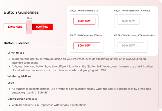 Comprehensive guidelines that define how and when to use design elements, ensuring clarity and a unified design language across teams and products.